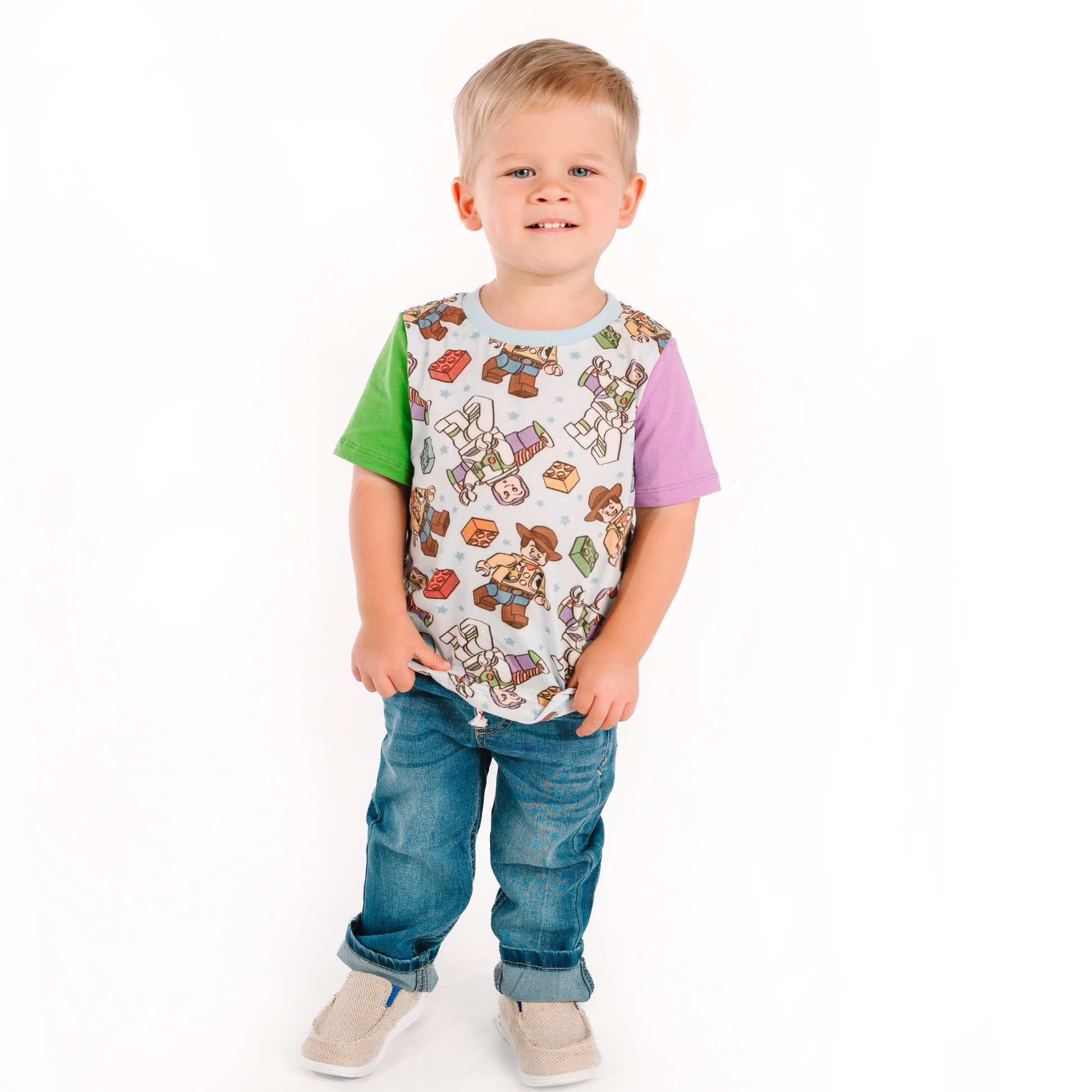 Let your little one join the adventure with our super cute Toy Story Color-Block Tee! Made from soft, breathable fabric, this shirt is designed for both boys and girls who love Woody, Buzz, and the whole gang. Featuring vibrant color-block sleeves and a seamless character pattern in the middle, this tee is as comfy as it is stylish—perfect for everyday play and beyond!
